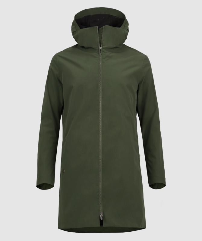 Jdete lesem, mrholí a pofukuje. Před vámi kopec, za ním už začnete sestupovat do města. Nevadí vám déšť – membrána ho zadrží. Je příjemné stoupat, pružný a prodyšný materiál vás neomezuje v pohybu. Cítíte se fajn, je skvělé být v přírodě. Ale těšíte se mezi lidi protože vám to dneska děsně sekne. Upravíte stahování v kapuci a vyrazíte do ulic. Umí tohle váš kabát?
