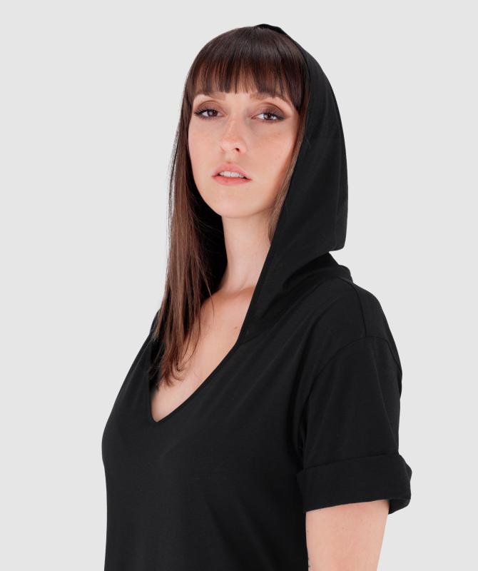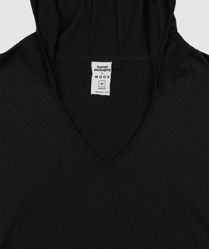 - výstřih do V zpevněný lemovkou a zakončený stylovou kapucí