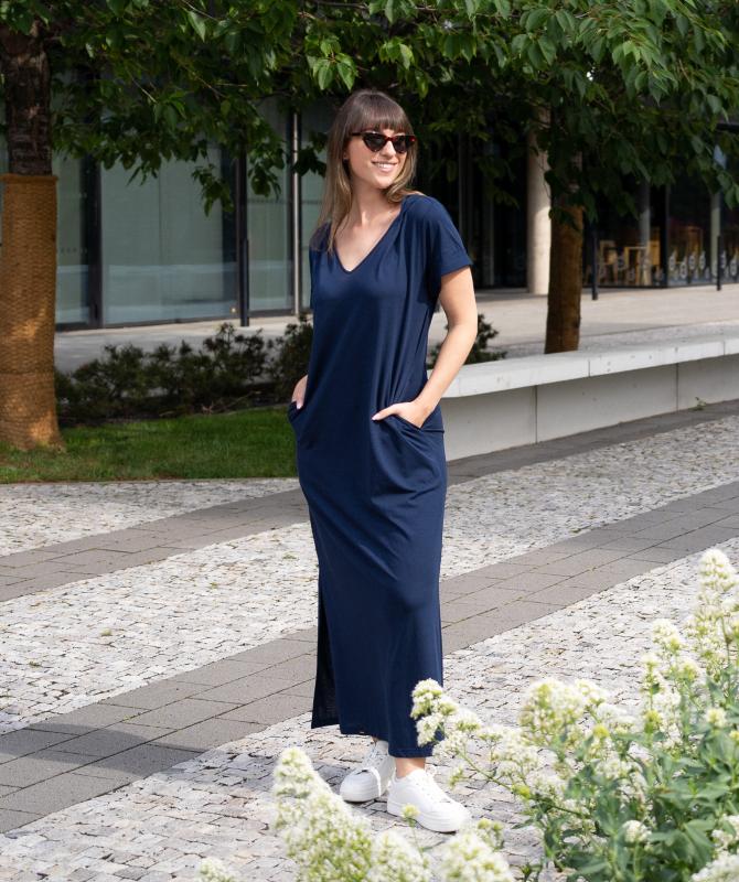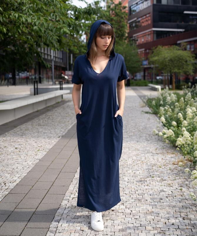 Šaty až po kotníky s kapucí a kapsama. Neexistuje ležérnější styl na vaše toulky mezi domy nebo stromy. 50 % modalu pro efektivní chlazení.- příjemný a měkký materiál