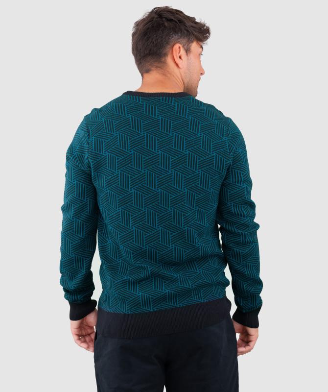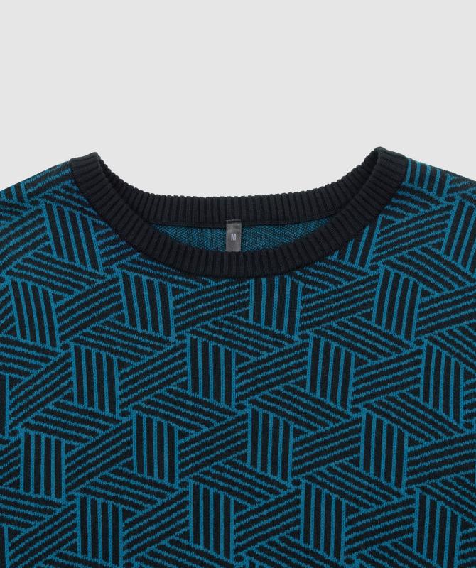 Sveter z kvalitnej česanej bavlny ponúka príjemný a priedušný materiál s originálnym geometrickým vzorom a odolným rebrovaným lemom.Tento sveter zaujme svojim sofistikovaným geometrickým rastrom, ktorý je založený na modulárnom princípe a priťahuje pozornosť už na prvý pohľad. Vďaka nemu budete mať jedinečný kúsok, ktorý podčiarkne váš štýl a zároveň poskytne pohodlie.