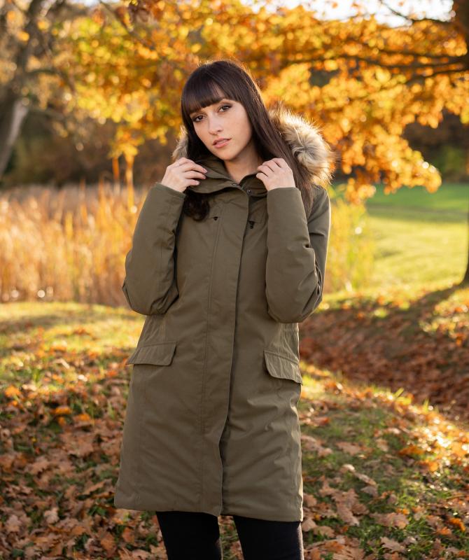 - objemná kapucňa s inovatívnym strihom a odnímateľnou umelou kožušinou