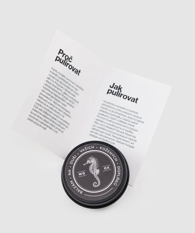 Balzám na duši Vašich kožených doplňků. Každý výrobek z wooxusní rukodělné kožedílny potřebuje čas od času vypulírovat, aby byl stále tak krásný jako Vy. Pokud se o něj nebudete starat, ztratí šmrnc, glanc a schopnost vás reprezentovat. Protože všichni toužíme po happyendech,… zobrazit celý popis