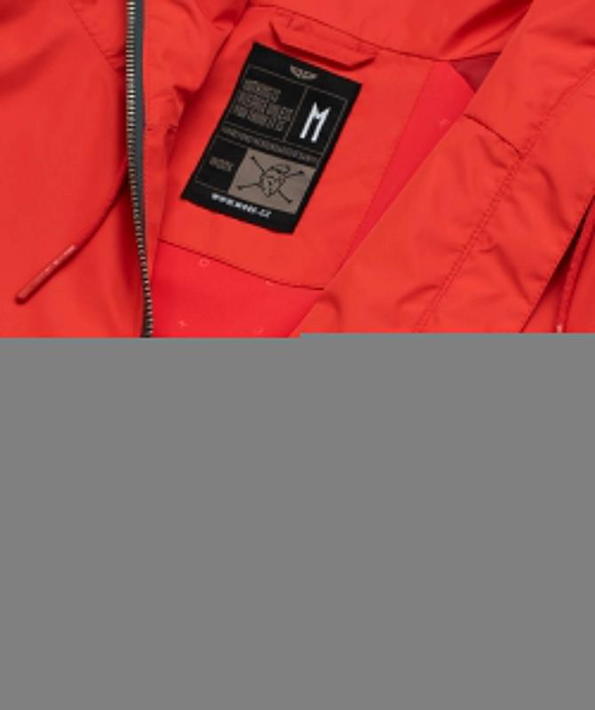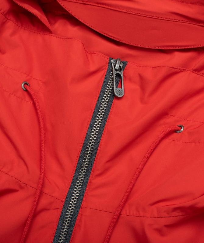 100% polyester, hlavní kovový zip, hlavní kapsy na kovový zip, podlepené švy, wooxusní pružná podšívka, vniřní uzaviratelná kapsa na zip, stahovatelná kapuce s kšiltem, rukávy jsou ukončeny stažením do gumy, membrána 8000mm/3000gm24h, funkční ventilace na zadním dílu, do spodní strany je všitý silikonový proužek.