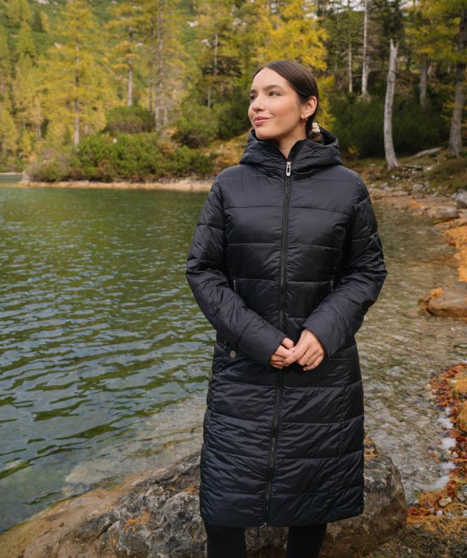 - prošívaný kabát vyrobený z recyklovaných materiálů