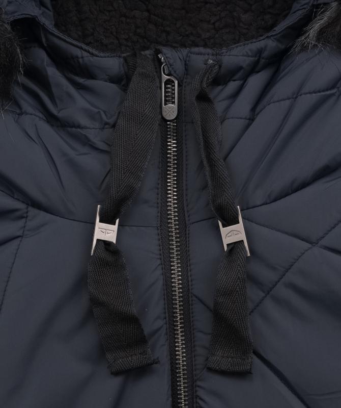 100% recyklovaný nylon, voděodolnost 8000mm, paropropustnost 3000g/m2/24h, povrchová úprava - DWR PFC free, stahovatelná kapuce, odjímatelný kožešinový lem kapuce, kovové zipy, zateplení Sofeelate - tělo 200g/m2, rukáv a kapuce 150g/m2, vnitřní uzaviratelná kapsa na zip, wooxusní podšívka, žebrovaný lem na koncích vnitřních rukávů.