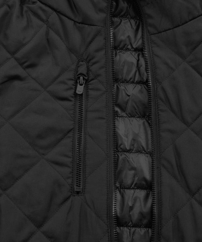 Jedna strana 100% nylon, druhá strana 100% polyester obojstranné využitie - jedna strana matná, druhá lesklá, vnútorná kapsička, pružná lemovka na rukávoch a spodnom leme, woxusné prešívanie. Vhodná ako termoizolačná vrstva pod hardshell bundu. Zateplenie: recyklovaný sofeelate 120 g/m2, povrchová úprava - DWR PFCfree.