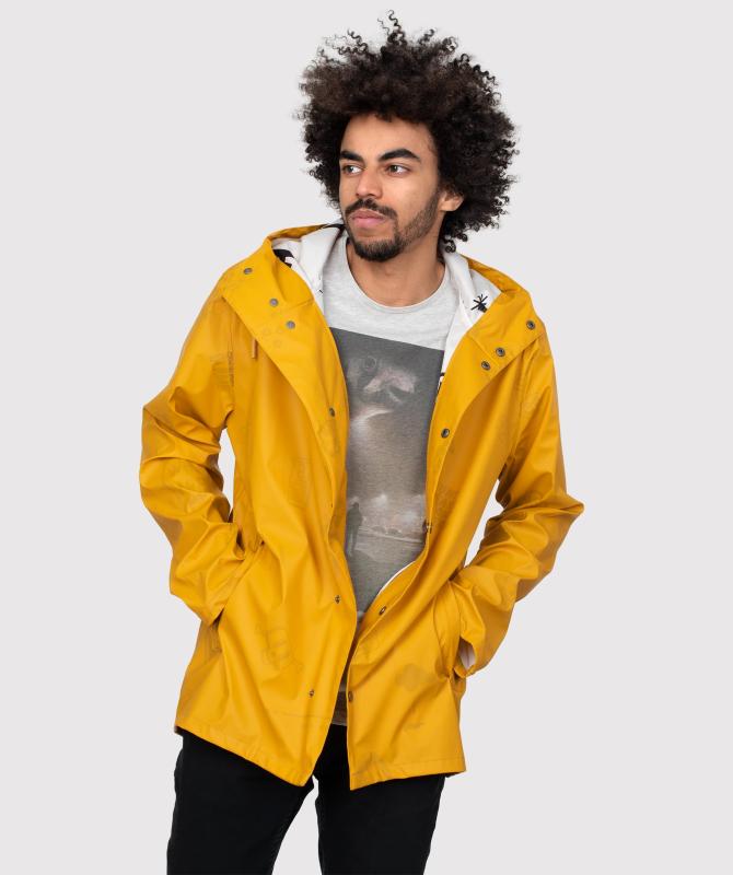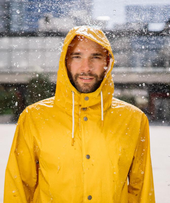 Dážnik je zlo. Nechcete vedieť, čo všetko sa môže stať, keď vám nečakane vystrelí. V pláštenke bez drôtov, pružín a gombíkov budete chcieť von hneď, ako začne pršať. Pozerať na utekajúcich okoloidúcich s obráteným dáždnikom môže byť veľmi upokojujúce.Pohodlná nepremokavá pláštenka s potlačenou podšívkou, ktorá presvitá a je viditeľná, 55% polyuretán a 45% polyester, zapínanie na druky, bočné vrecká prekryté lištou, lepené švy, sťahovacia kapucňa, nastaviteľné rukávy so zapínaním na druk.