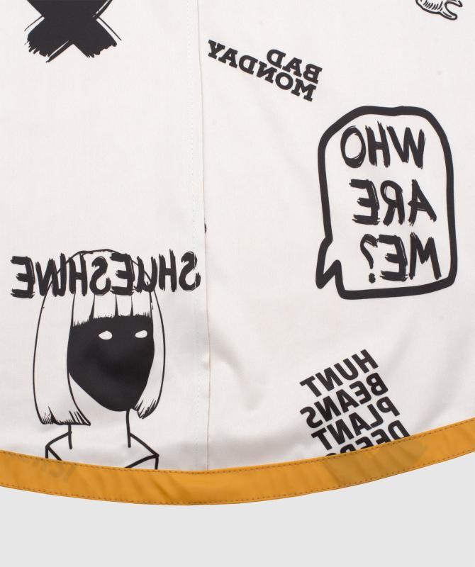 Pohodlná nepromokavá pláštěnka s podtištěnou podšívkou, která prostupuje a je viditelná, 55% polyuretan a 45% polyester, zapínání na druky, boční kapsy překryté lištou, lepené švy, stahovatelná kapuce, nastavitelné rukávy se zapínám na druk.
