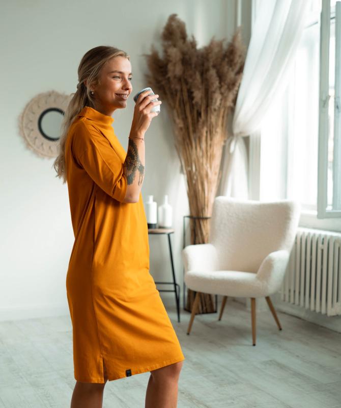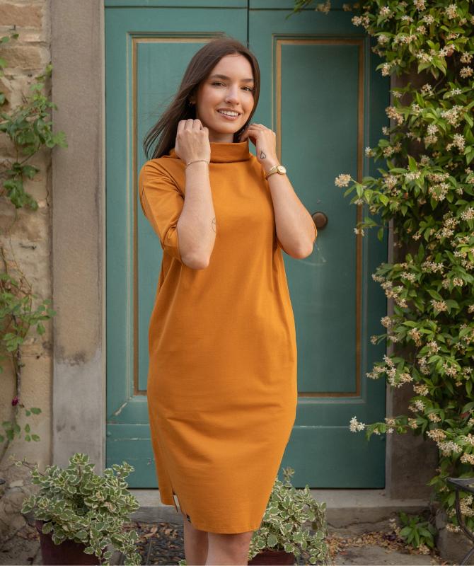 Roli nejlibovější látky z 100% bavlny o váze 150g/m2 jsme dokutáleli do Jeseníku. V Jesenické wooxusní manufaktuře - nebo některé z blízkých spolupracujících dílen v česko-polském okolí - rozmotali, nastřihali a ušili vaše budoucí nejoblíbenější šaty. Vyvinuto a designováno v ČR, vyrobeno v EU. Skvěle padnoucí střih zajišťující krásu a pohodlí.