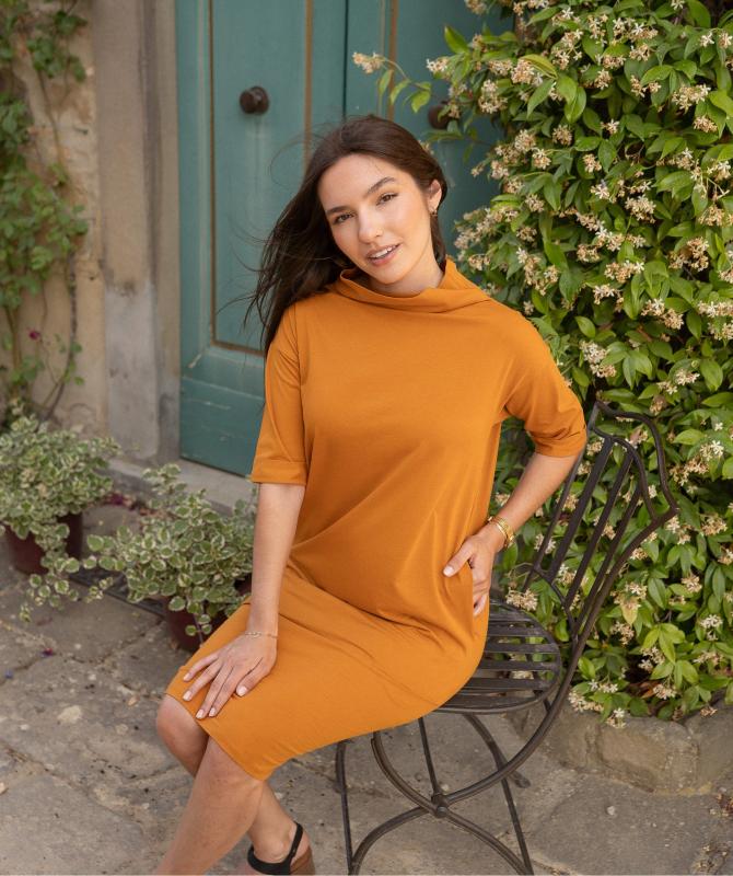 Rolu najobľúbenejšej látky z 100% bavlny o váhe 150g/m2 sme dokotúľali do Jeseníka. V Jesenickej wooxusnej manufaktúre - alebo niektorej z blízkych spolupracujúcich dielní v česko-poľskom okolí - rozmotali, nastrihali a ušili vaše budúce najobľúbenejšie šaty. Vyvinuté a navrhnuté v ČR, vyrobené v EÚ. Skvele padnúci strih zaisťujúci krásu a pohodlie.