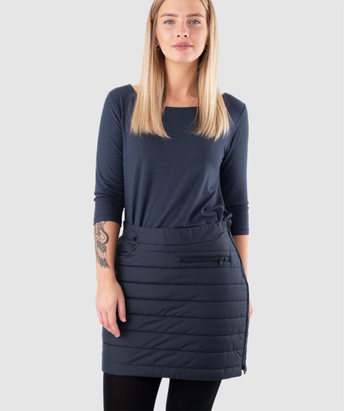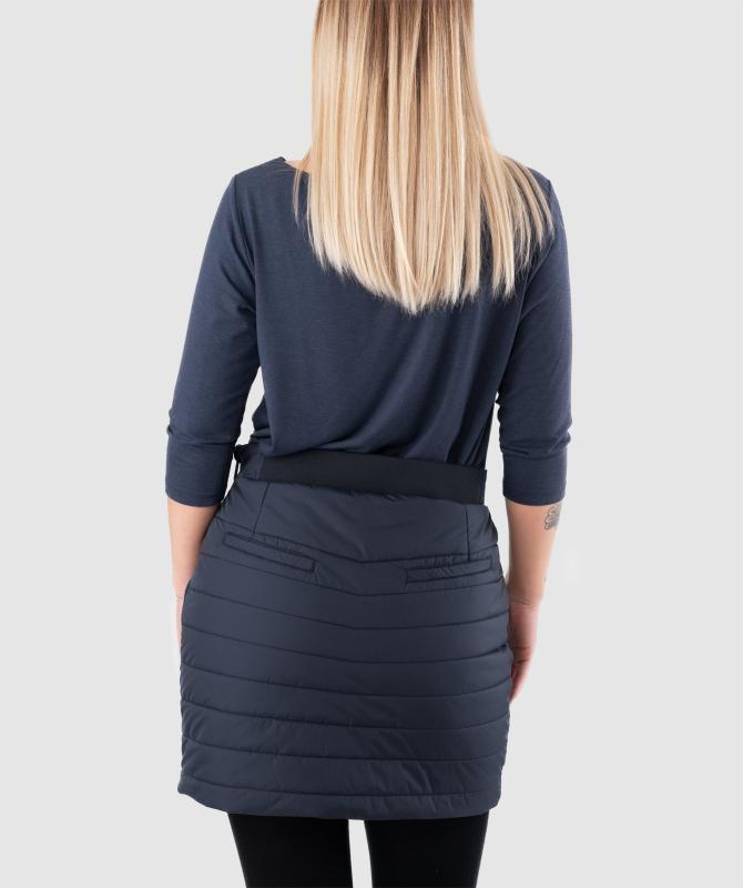 100% recyklovaný nylon, sukně je kompletně rozepínatelná bočním zipem, zateplení polyfill - 200g/m2, pas 80g/m2, voděodolnost 8000mm, paropropustnost 5000g/m2/24h, povrchová úprava - DWR PFCfree, dvě zadní lištové kapsy, dvě přední kapsy, jedna z nich uzavíratelná zipem, pružný pas.
