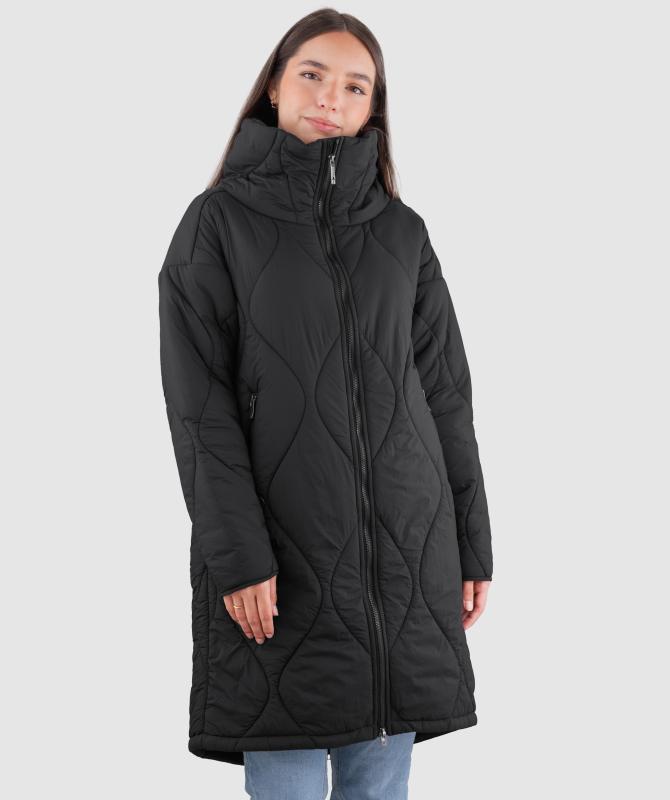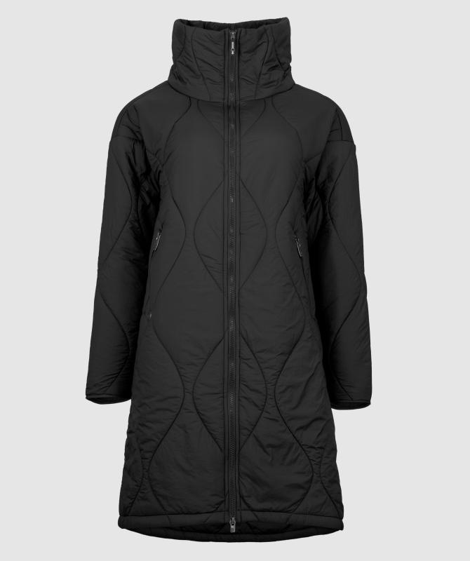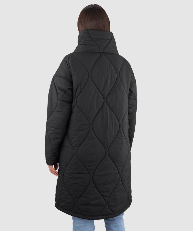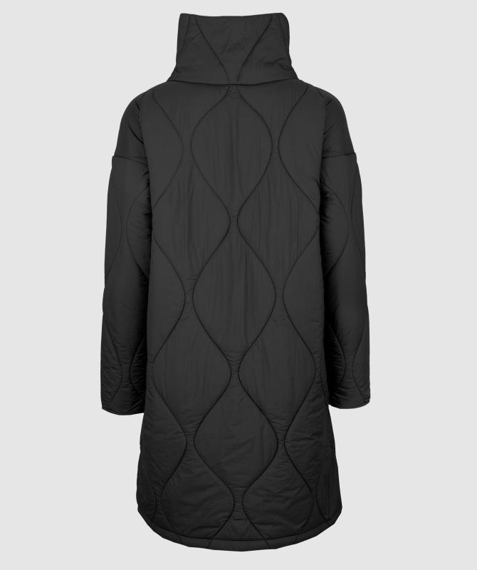 Prešívaný kabát s originálnym vzorom má voľnejší strih, ktorý umožňuje pohodlné vrstvenie oblečenia pod kabát. Vysoký a široký stojaci golier poskytuje spoľahlivú ochranu proti chladu a vetru.