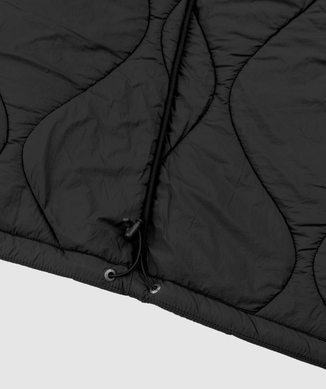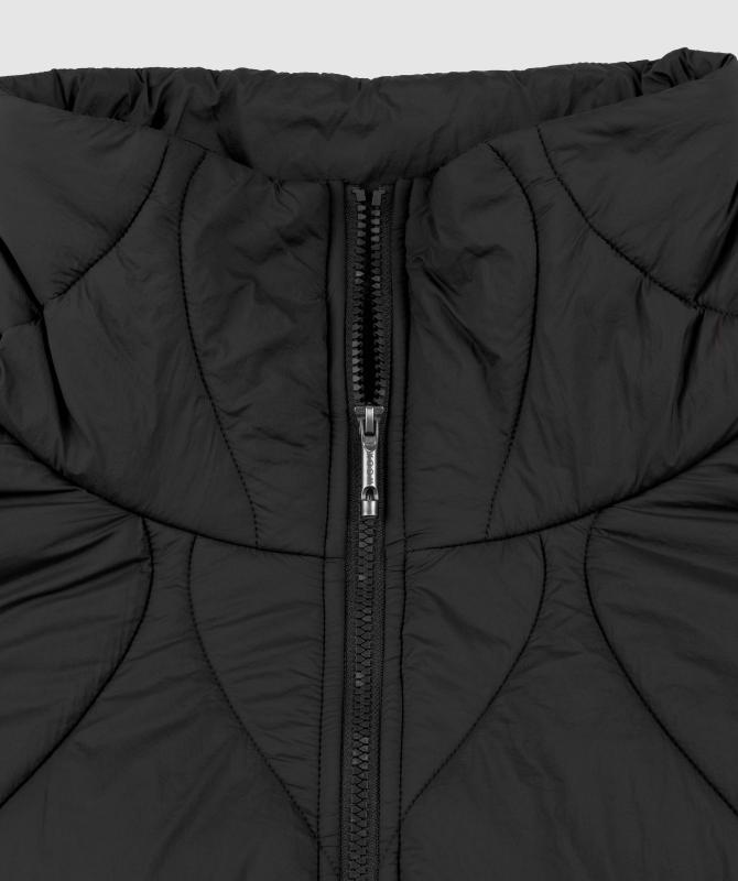 Tento kabát spája moderný dizajn s praktickými vlastnosťami a ohľadom na životné prostredie. Vrchný materiál aj podšívka sú z ľahkého a priedušného nylonu, ktorý prispieva k pocitu komfortu počas nosenia.