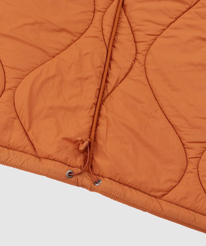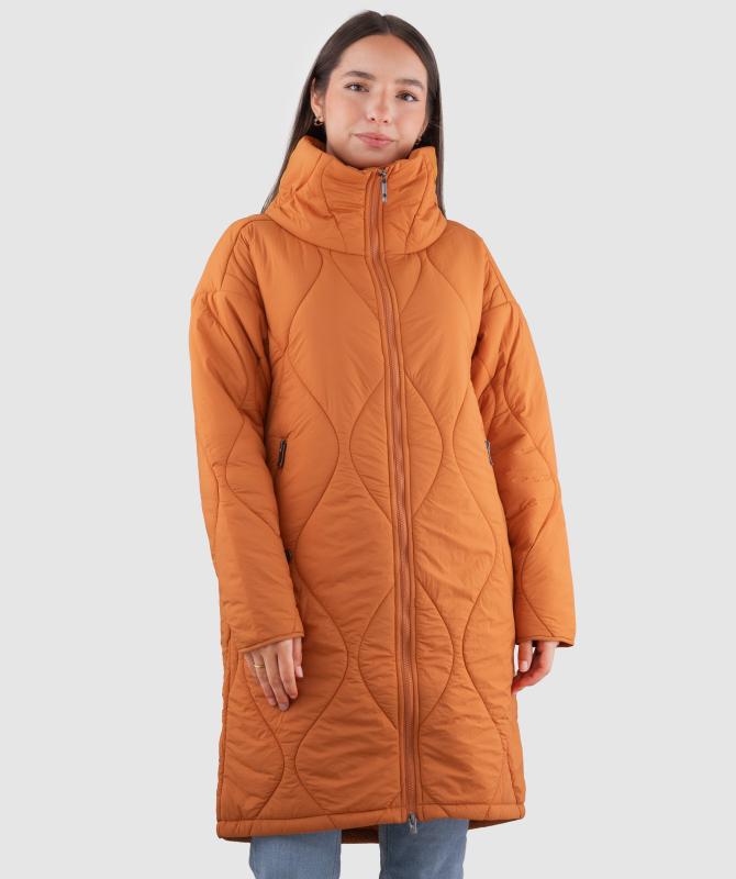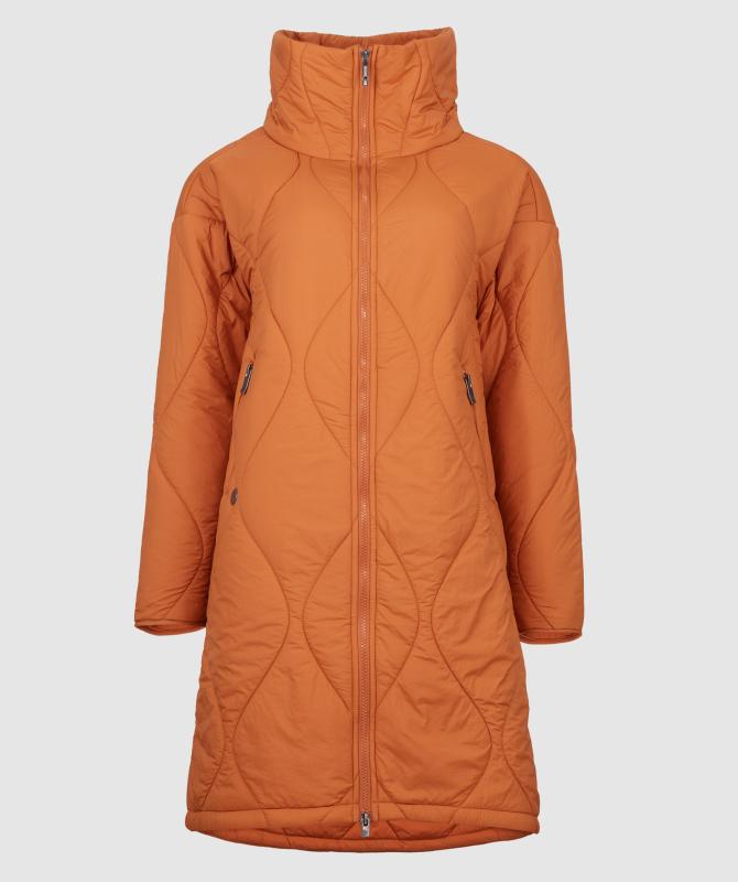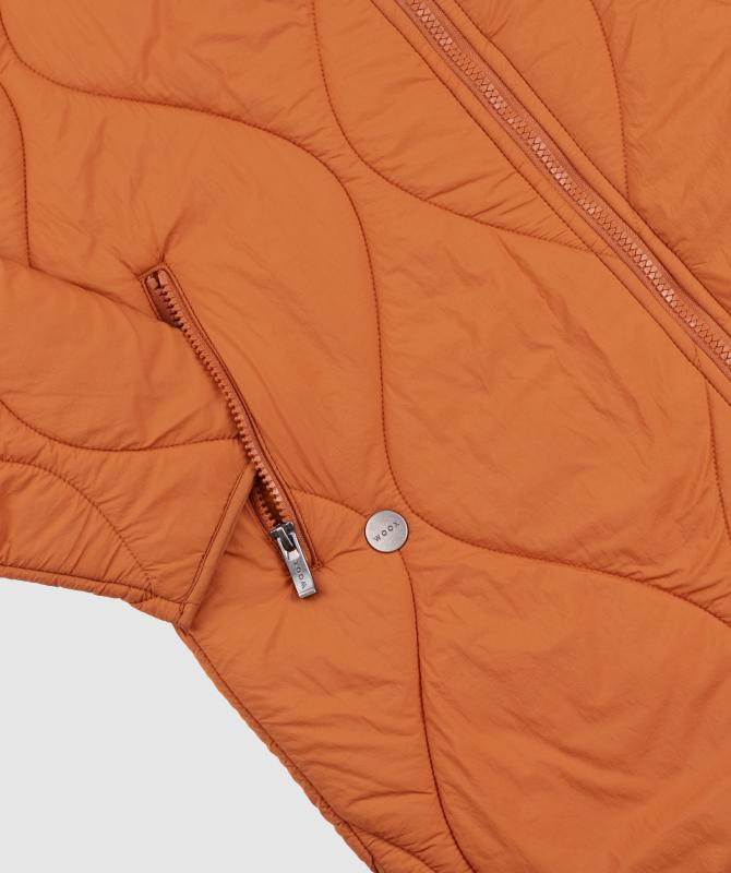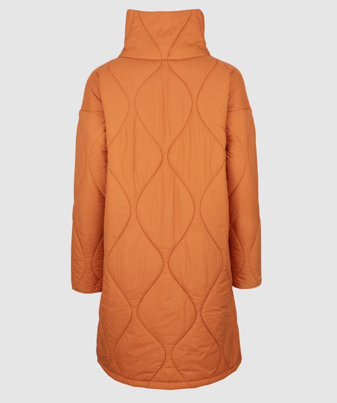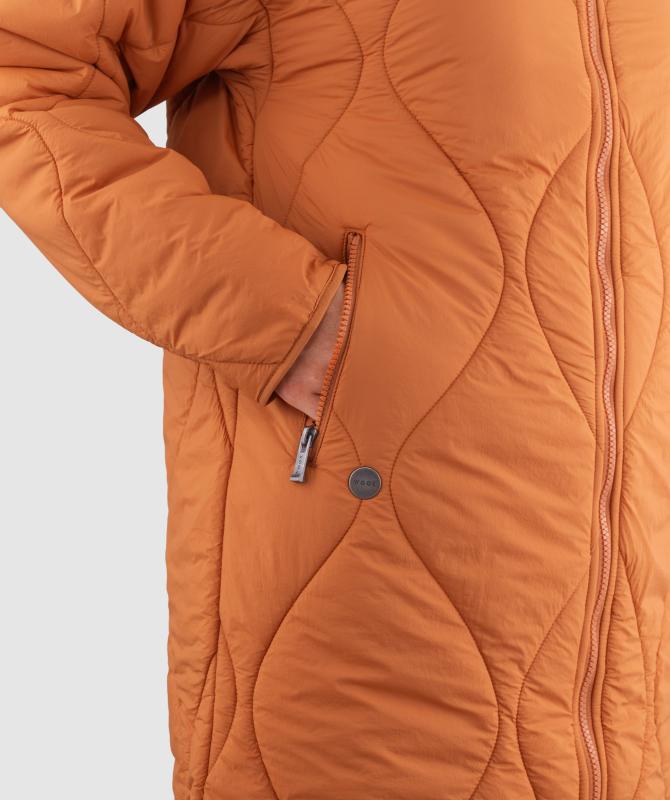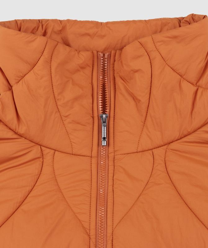 Výplň tvorí recyklovaný polyester, ktorý poskytuje dostatočné hrejivé vlastnosti a zároveň je šetrný k životnému prostrediu. Prešívaný dizajn s originálnym vzorom dodáva kabátu moderný vzhľad a zároveň pomáha udržať výplň rovnomerne rozloženú.