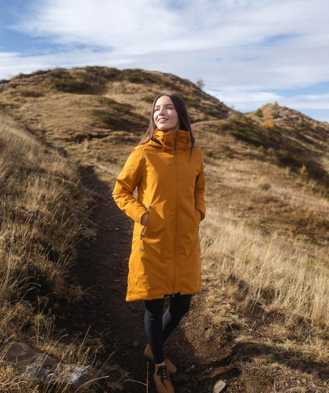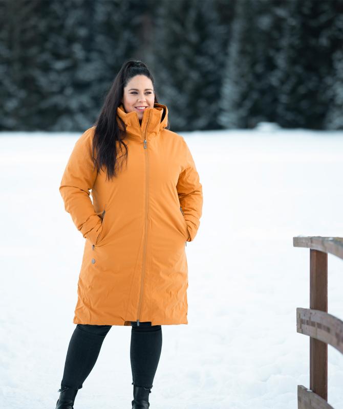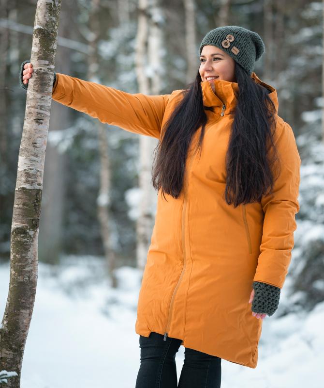 Veľmi dlhý, veľmi teplý, veľmi obdivovaný všade tam, kam si v ňom vyrazíte. Ak to bude do kaviarne, posaďte sa radšej tak, aby ste videli na vešiak. Tá pani, ktorú cez výklad vidíte utekať smerom k nádražiu v úplne rovnakom kabáte, totiž dosť možno nesprintuje kvôli autobusu.- funkčný zimný kabát z odolného materiálu s podšívkou a zateplením zo 100% recyklovaného polyesteru