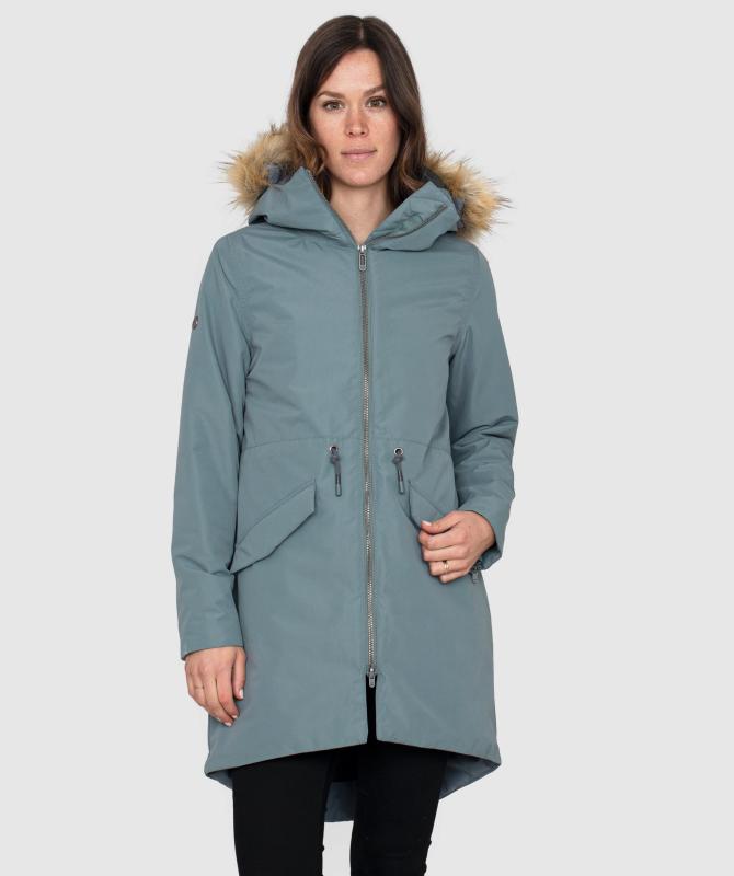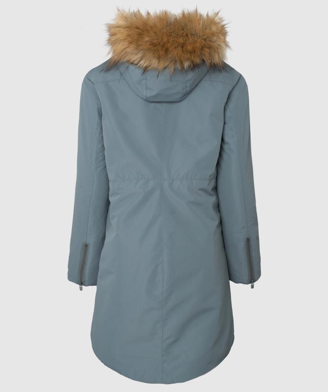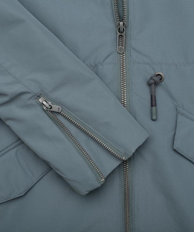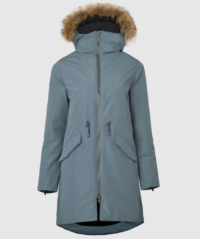 100% recyklovaný polyester, prošívaná pružná podšívka, zateplení polyfill tělo 120g, rukáv/kapuce 80g, voděodolnost 8000mm, paropropustnost 3000/m2/24, podlepené švy, vnitřní kapsa uzaviratelná na kovový zip, boční kapsy s patkou uzaviratelné na druk, stahování v pase, nastavitelné rukávy se zapínám na zip, snímatelný kožíšek na kapucí.