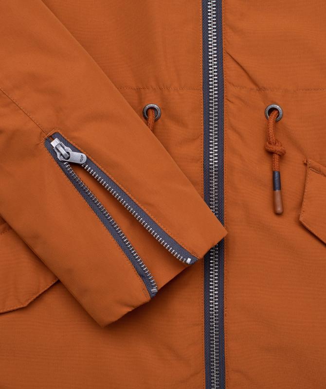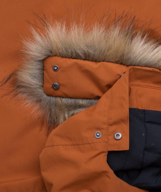 100% recyklovaný polyester, prošívaná pružná podšívka, zateplení polyfill tělo 120g, rukáv/kapuce 80g, voděodolnost 8000mm, paropropustnost 3000/m2/24, podlepené švy, vnitřní kapsa uzaviratelná na kovový zip, boční kapsy s patkou uzaviratelné na druk, stahování v pase, nastavitelné rukávy se zapínám na zip, snímatelný kožíšek na kapucí.