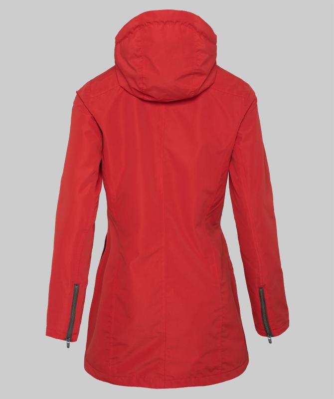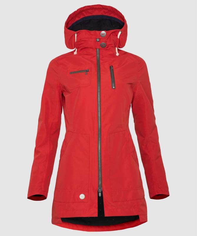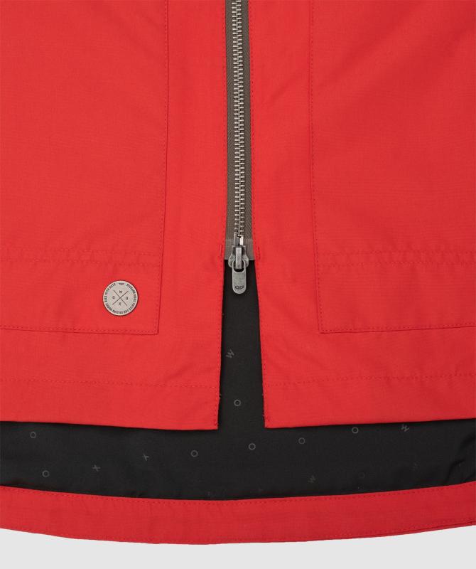 100% recyklovaný polyester, vodeodolnosť 8000mm, paropriepustnosť 3000g/m2/24h, podlepené švy, zapínanie na dvojcestný oceľový zips, bočné vrecká uzatvárateľné na druk, náprsné vrecká na zips, vnútorné uzatvárateľné vrecko na zips, nastaviteľná a stiahnuteľná kapucňa, wooxusná pružná podšívka, nastavenie šírky rukávov pomocou zipsových rozparkov.
