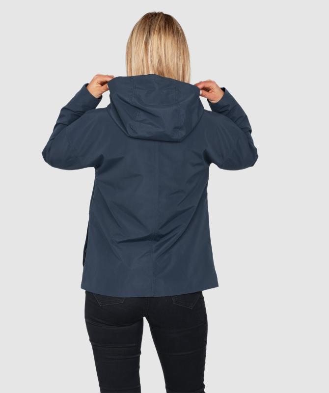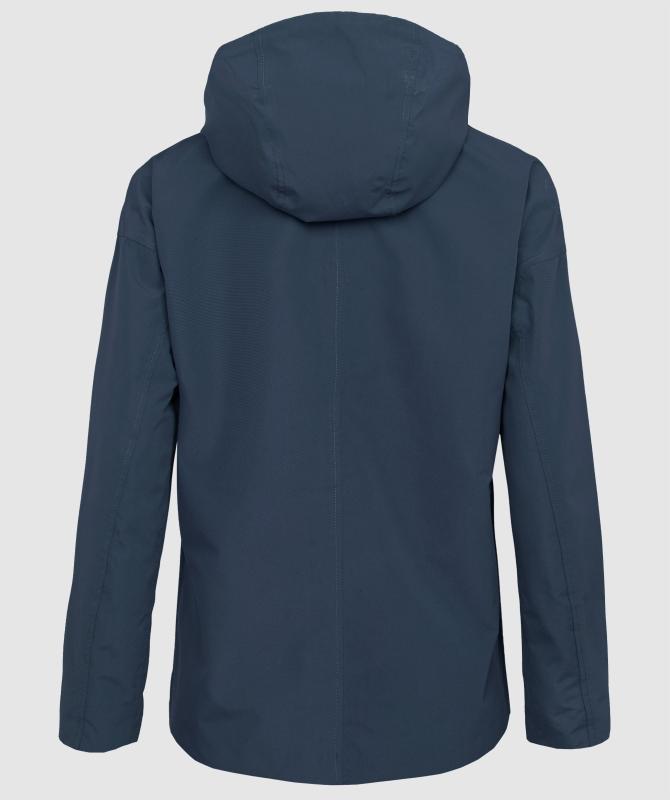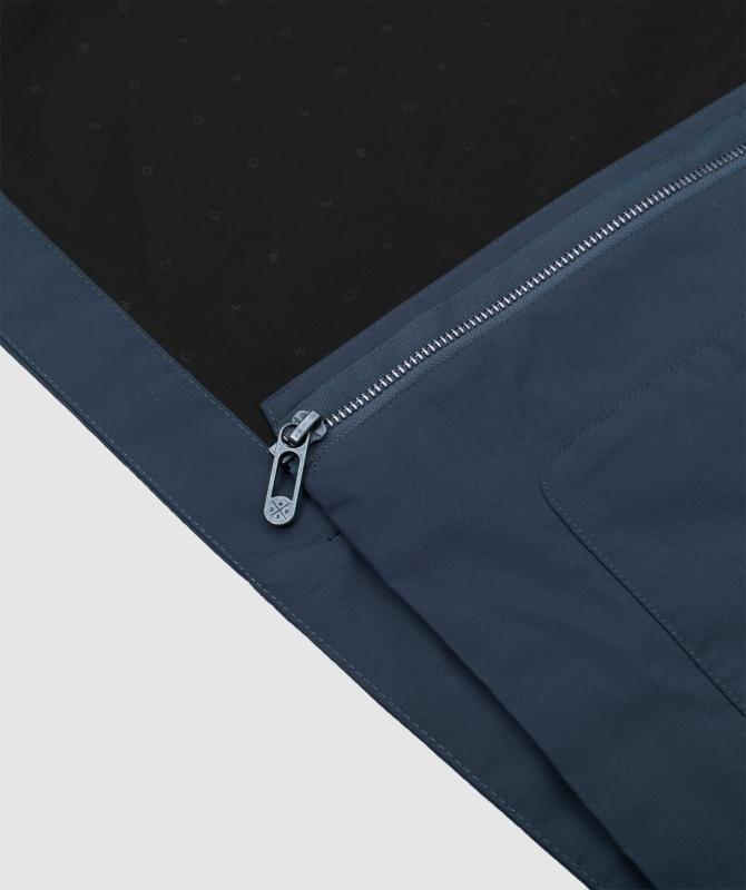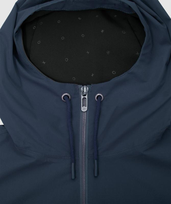 100% polyester, vodeodolnosť 8000mm, paropriepustnosť 3000g/m2/24h, hlavný kovový zips, nakladané dve uzatvárateľné bočné vrecká na zips, podlepené švy, vnútorné uzatvárateľné vrecko na zips, wooxusná pružná podšívka, sťahovacia kapucňa, funkčná ventilácia na zadnom diely.