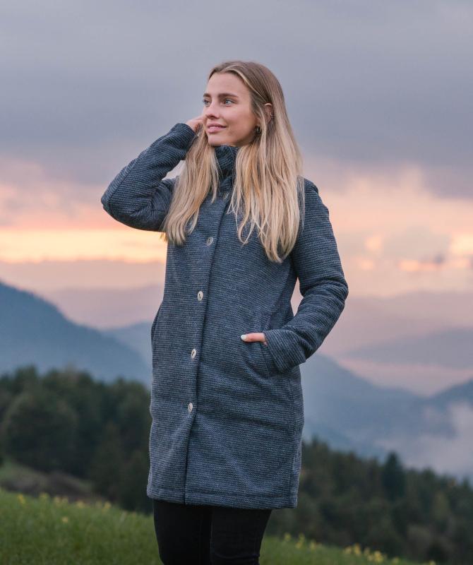 Složení: 50% polyester, 37 % akryl, 13% polyamid. Třívrstvý, stretchový materiál s membránou a vnitřním fleecem, vodní sloupec 5 000mm, paropropustnost 5 000g/m2/24h, zapínání na knoflíky, hlavní lištové kapsy, decentní příjemný střih s kapucí