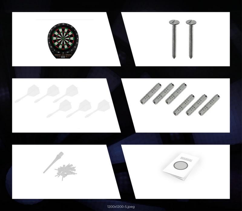 - • Obsah balení: Elektronický terč, 6 softtip šipek (2 sady), 24 náhradních softtip hrotů