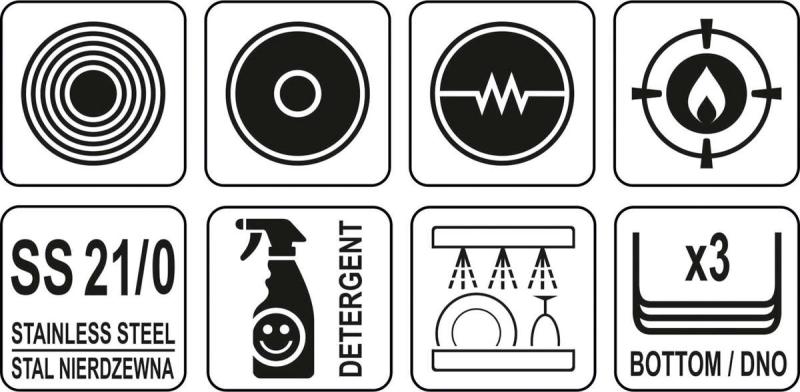 Speciální vložka feromagnetická ve spodní části umožňuje použít YATO pánve na jakýkoliv typ sporáku: