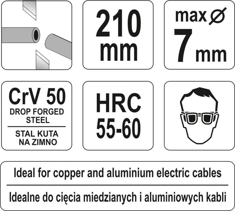 Vhodné pro stříhání Al a Cu vodičů do průměru 7 mm.