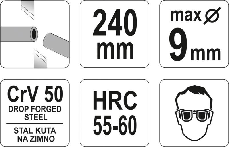 Zhotovené z CrV-50 oceli 55-60 HRC. Oplastované rukpojeti zabezpečují míru komfortu při práci.