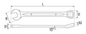Očkoplochý klíč Yato vyrobený z chromvanadiové slitiny oceli, povrch je částečně satinovaný a leštěný do vysokého lesku. AS-Drive je vylepšený profil u nástrčných a očkových klíčů, v tomto případě očka. Vnitřní profil je tvarován do mírného obloučku. Tím při záběru hlavní síla nepůsobí přímo na hranu šroubu, ale na plochu, což snižuje opotřebení šroubu a pomáhá při demontáži již poškozených šroubů.