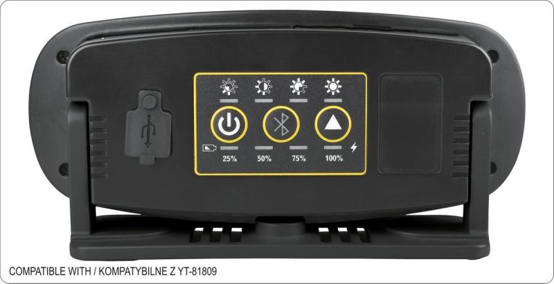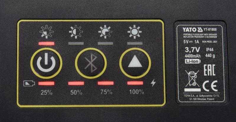 Bateriová lampa Yato 3v1 je skvělý nápad pro lidi, kteří rádi poslouchají hudbu při práci nebo relaxaci. Dvě výkonné COB LED poskytují 2000lm osvětlení a šest provozních režimů vám umožní přizpůsobit je aktuálním potřebám. Lithium-iontová baterie s kapacitou 4400mAh zaručí od 2,5 do 12 hodin práce a možnost využití funkce powerbanky. Zařízení lze propojit např. s telefonem přes bluetooth a následně přehrávat oblíbenou hudbu díky kvalitnímu reproduktoru.ZDROJ SVĚTLA: