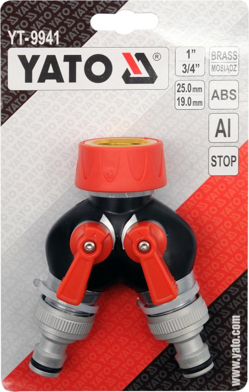 Hadicová spojka k propojení hadic mezi sebou. Závitové napojení. Spojka ve tvaru ,,Y" pro napojení až 3 hadic. 2 uzávěry pro možnost snadné regulace přítoku vody. Jednoduchá a rychlá montáž/demontáž. Pro průměr 13 mm. Hliníková konstrukce. Značka YATO je záruka vysoké kvality.| materiál | ABS / hliník |