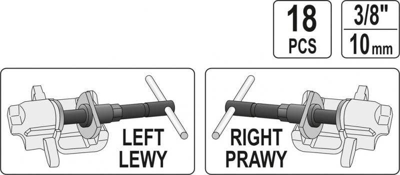 V sadě se nachází 18 ks součástí pro montáž. Obsahuje levé i pravé nástroje, pomáhá předejít poškození pístu a obložení.