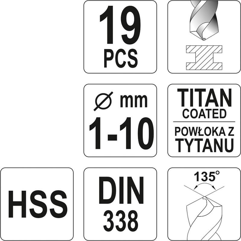 Yato Sada vrtáků do železa HSS-TiN 19ks 1-10mm