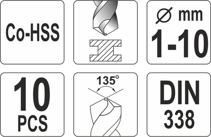 Yato Sada vrtáků na kov 10ks HSS-COBALT 1-10mm