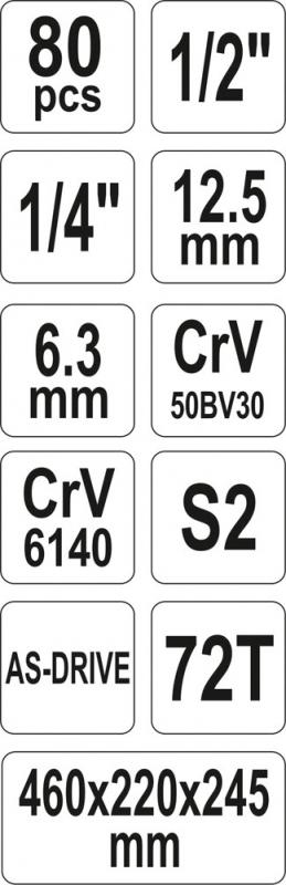 Yato Skříňka s nářadím 1/2", 1/4" 80 ks