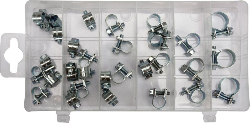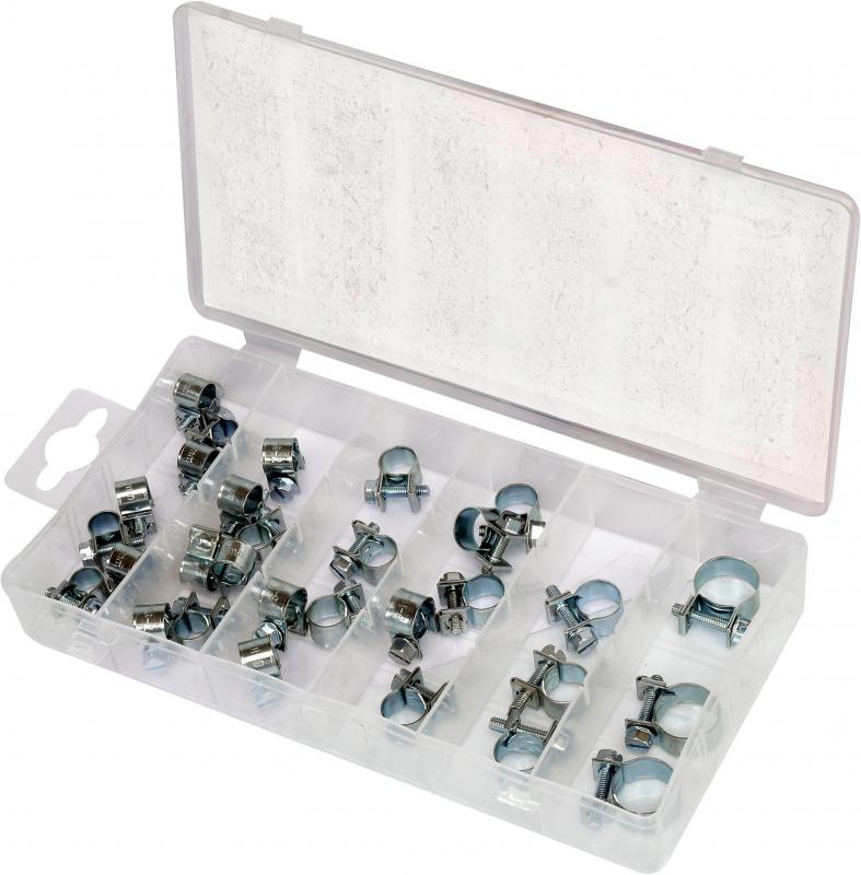 Sada 30 ks univerzálních spon, pro hadičky, kabeláž apod.Vše je přehledně uspořádáno v kompaktním plastovém kufříku.