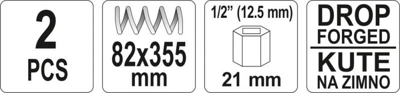 Délka stahováku 355 mm a šířka 82 mm a 1/2" / 21 mm zakončení zajistí snadnou demontáž běžných vinutých pružin automobilů.