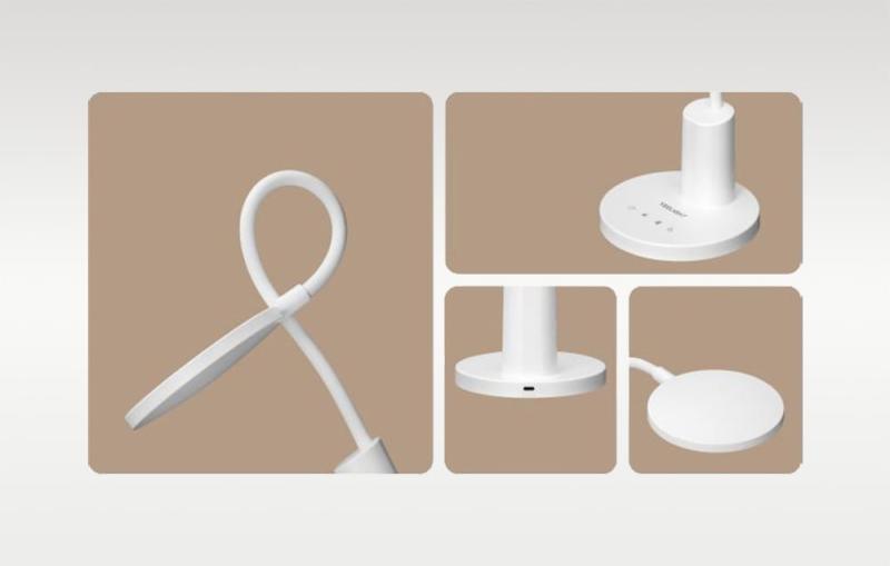 Flexibilní rameno lampy, které lze otáčet o 360°, umožňuje přesně nastavit úhel svícení. Zaoblené hrany zajišťují bezpečnější používání a díky povrchové úpravě z měkkého materiálu je zařízení příjemné na dotek.