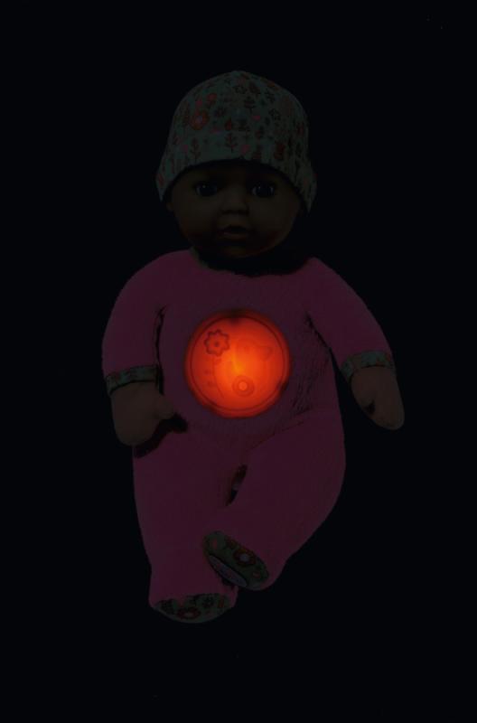 Originální panenka BABY born. Děti si s panenkou mohou hrát a tulit se k ní, bude jim pomáhat v klidu usnout, zároveň je to skvělá panenka pro představení hry. Díky rozkošné panence "Svítí ve tmě" se z usínání stane dětská hra. Látkovou panenku ve velikosti 30cm můžete umístit do kolébky nebo do dětské postýlky těch nejmenších dětiček už od narození. Má měkké tělíčko a rozkošné plyšové dupačky. Stisknutím kolečka na bříšku se aktivuje noční světýlko s kačenkou a rozezní se uklidňující melodie. Měkkou vinylovou hlavičku panenky chrání čepička s roztomilým potiskem. Různé textury materiálů na panence povzbuzují malé děti k hraní a objevování. A když se děti rozhodnou ručičku nebo nožičku panenky použít jako kousací kroužek, panenka se dá jednoduše vyprat v ruce, stačí z ní jen vyjmout zvukový modul. Věk 0+