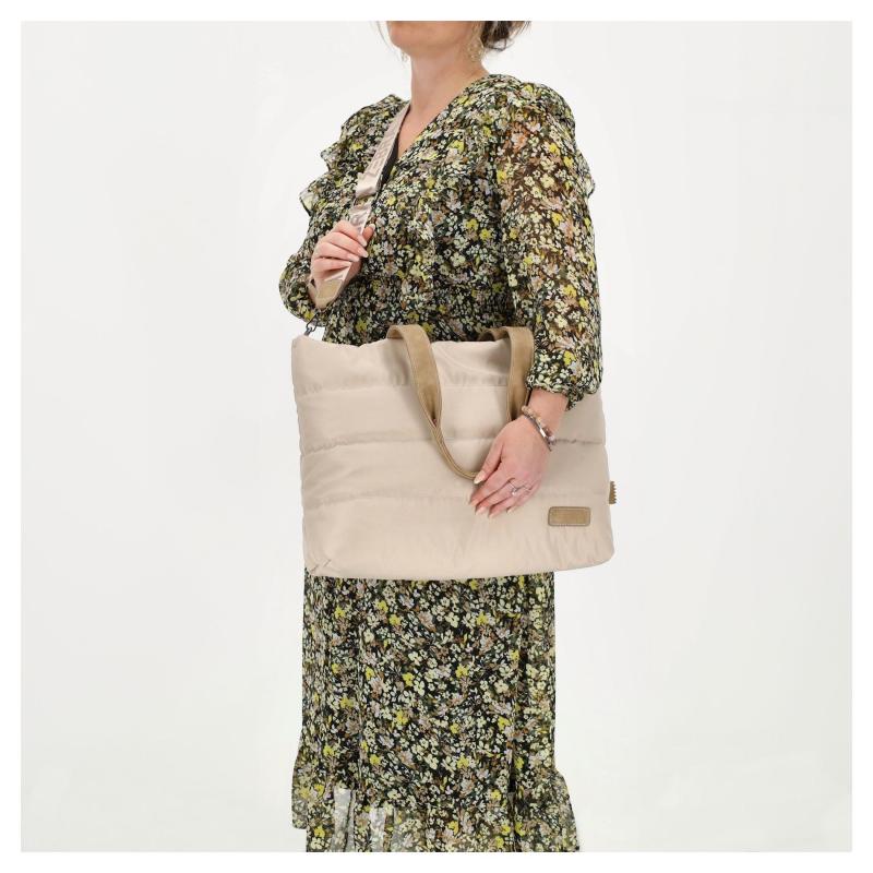 Elegantní design: Moderní puffer vzhled v barvě light taupe.