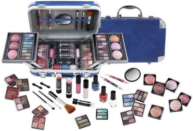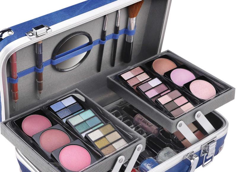 Kosmetický modrý kufřík s hliníkovými rohy - set dekorativní kosmetiky Travel Blue pro dospělé od Zmile Cosmetics. Nyní můžete vymýšlet každý den nový, úžasný look! Kufřík plný líčení, se kterým si budete
