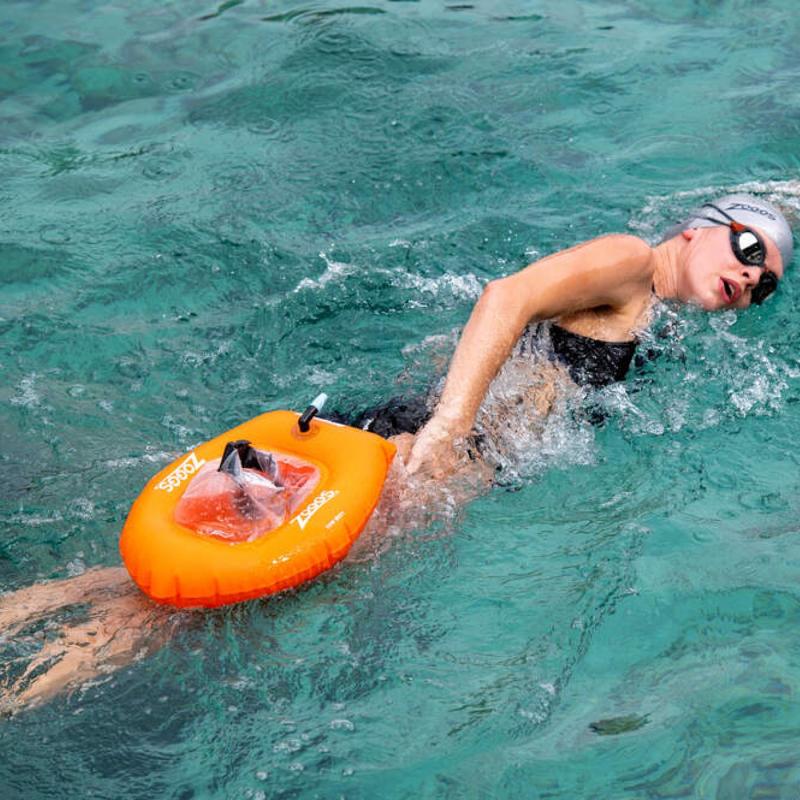 Nafukovací plavecká bójka Zoggs vizuálně vypadá jako nafukovací lodička. Jedná se o barevný dobře viditelný plovák, který označuje plavce na otevřené vodě.