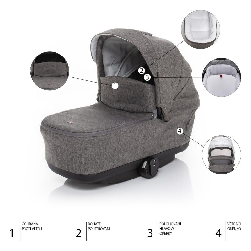 Měkké a pohodlné hnízdečko na kolečkáchHluboká korba ke kočárku QUEST tvoří příslušenství k