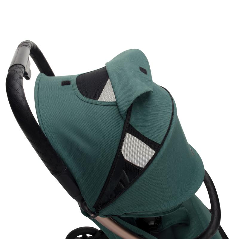 stříška s ventilačními okýnky chrání dítě před sluncem i větrem. Součástí je