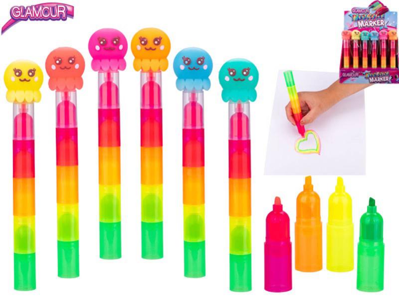 Zvýrazňovač chobotnice pětibarevný popisovač 5v1 6 barev